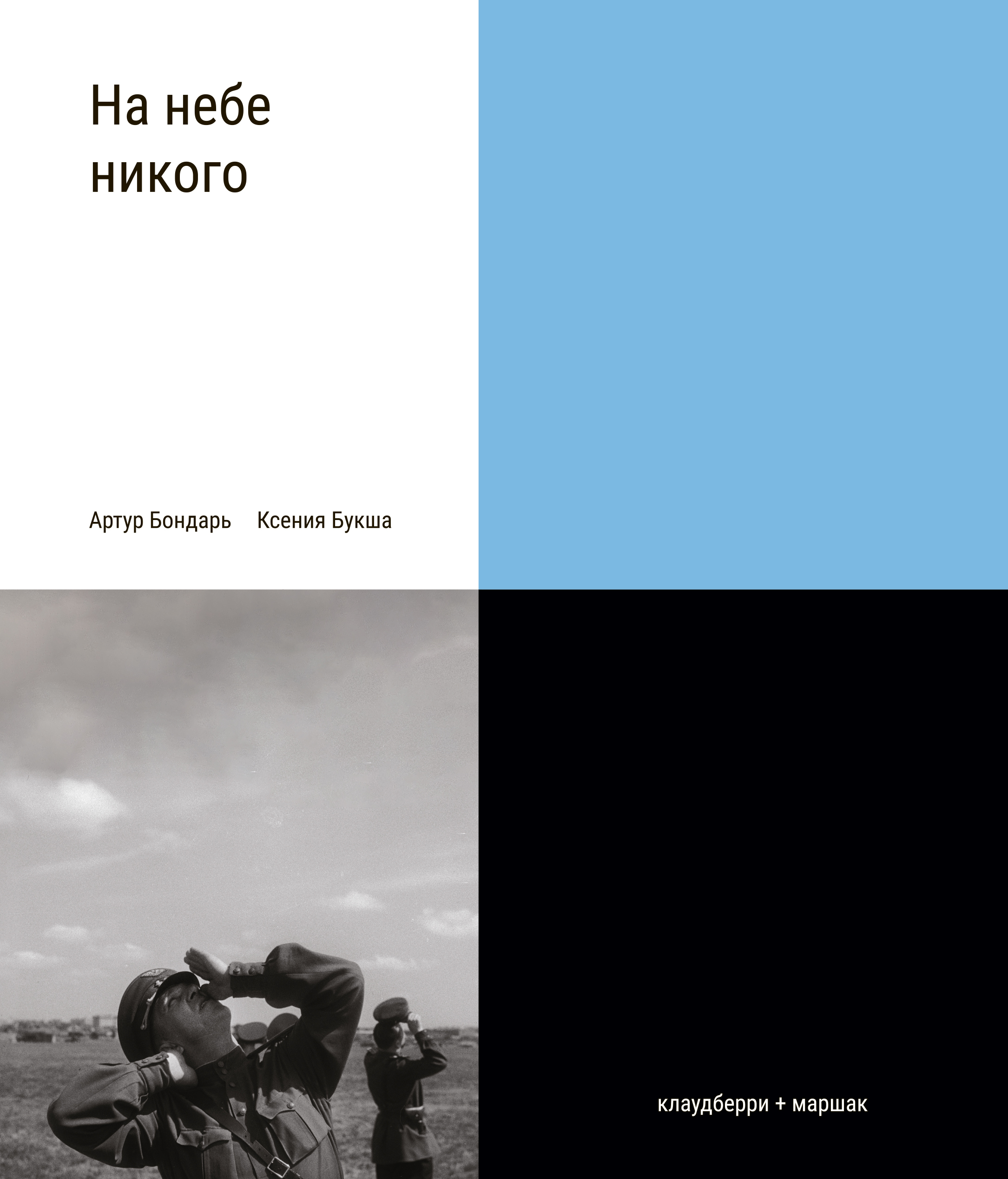 «На небе никого» – это сочетание художественного и документального. Оставаясь на территории литературы, мы подчеркиваем важность и актуальность реальной военной истории. Мы объединили эти два языка, два мира, две половины книги, чтобы синтезировать новый способ говорить о том, для чего теперь особенно трудно подобрать слова. Ксения Букша написала 33 перекликающиеся истории про разных людей, военных и гражданских, оккупированных и эвакуированных, мужчин и женщин, детей и стариков, советских и немецких, польских и американских. Все главы появились в результате переработки множества реальных воспоминаний и дневников советских, немецких, американских участников и свидетелей войны. Реальные ситуации, детали жизни того времени невозможно придумать, их можно только найти. Все персонажи вымышленные, но голоса у них настоящие. Артур Бондарь выбрал из своей огромной коллекции 113 фотографий. Это документальные кадры, они не служат иллюстрациями, но, помещённые в контекст художественной прозы, складываются в параллельное повествование. Какие-то из фотографий имеют автора и предысторию, какие-то анонимны; про некоторые можно с точностью до часа сказать, когда они были сделаны, про другие же можно только делать предположения. Это огромный объём документальных свидетельств, который обязательно должен увидеть свет – так родилась идея книги о войне с настоящими кадрами. Книга была написана в 2021 году. |